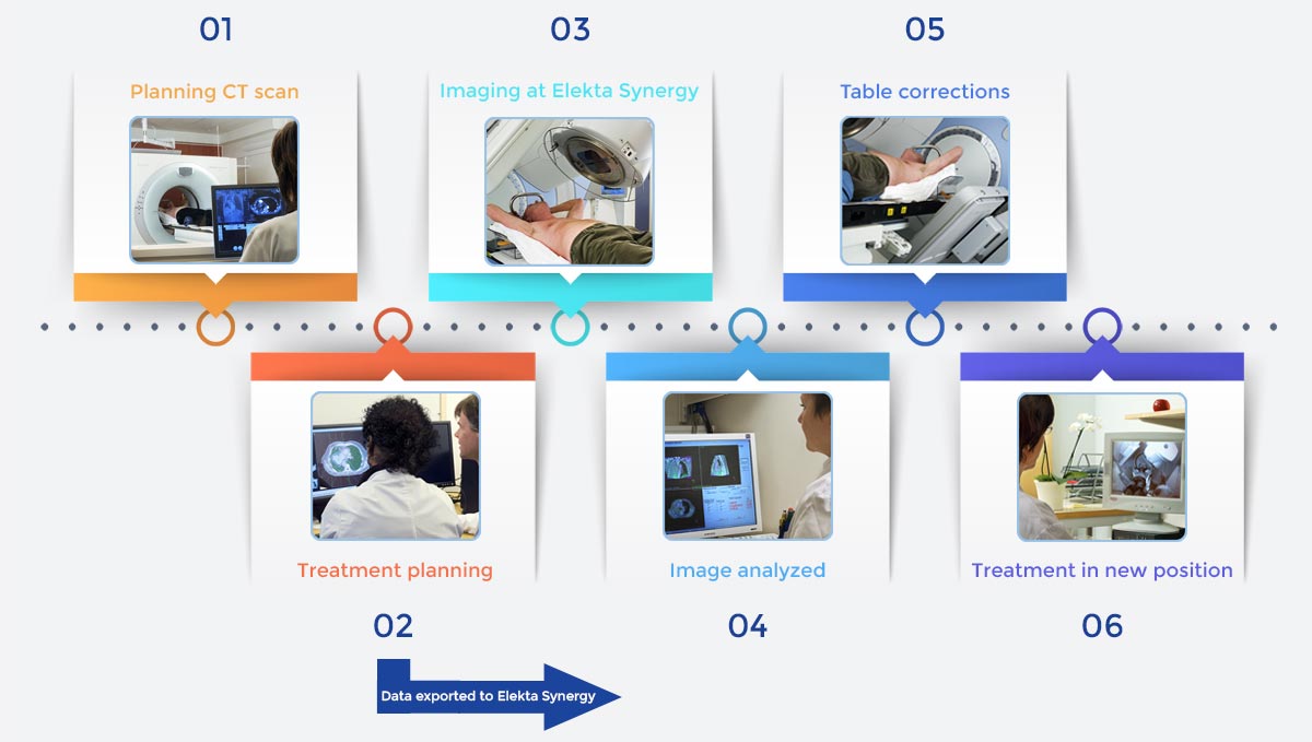 The 3-D high-quality images taken at the time of your treatment can be studied against your previous CT scans precisely and promptly to ensure that the doctors are treating your tumor as accurately as possible while greatly limiting any exposure to healthy tissue in the area.